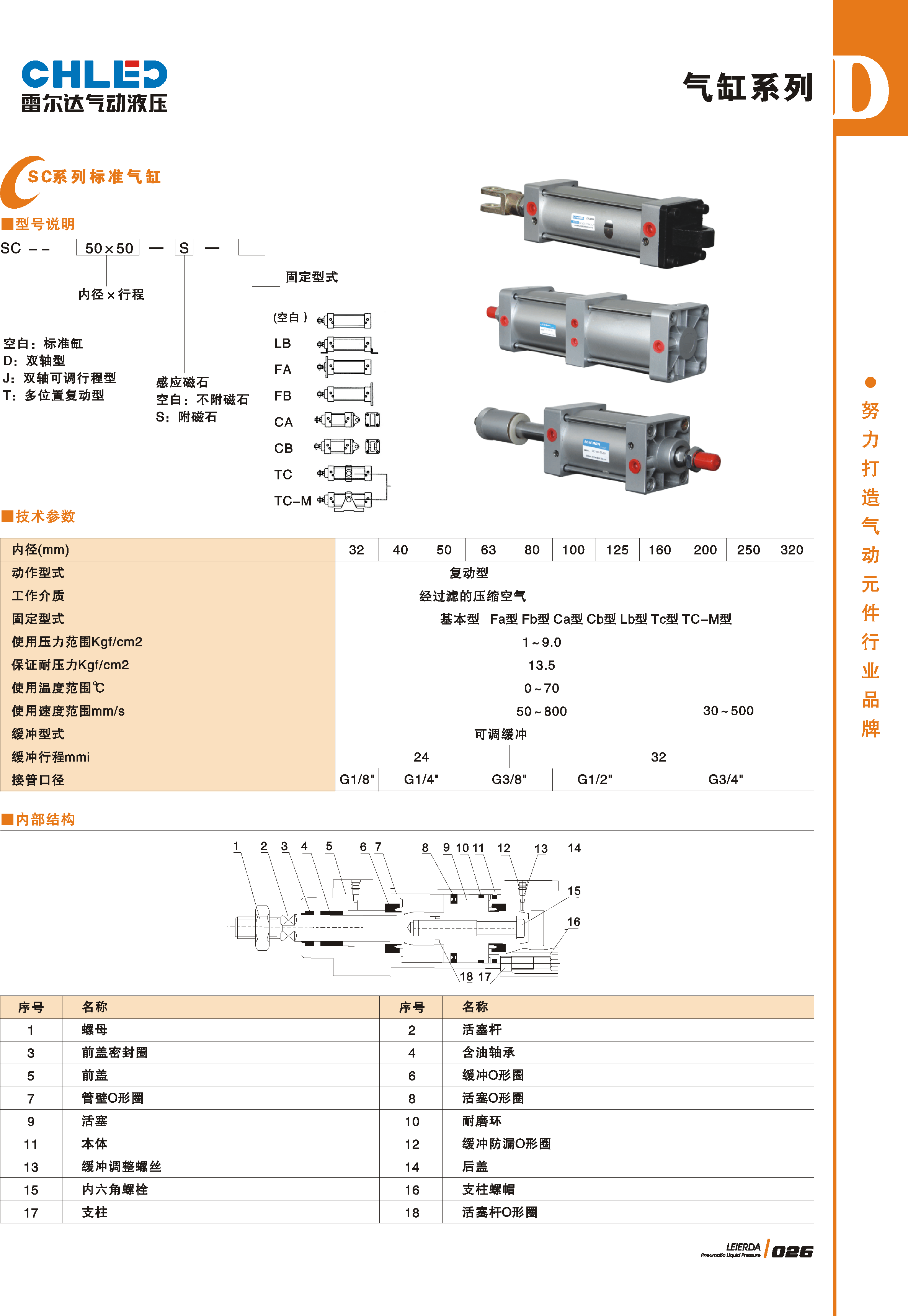 SC50-700,SC50*700,SC50X700,CHLED雷尔达标准复动型气缸