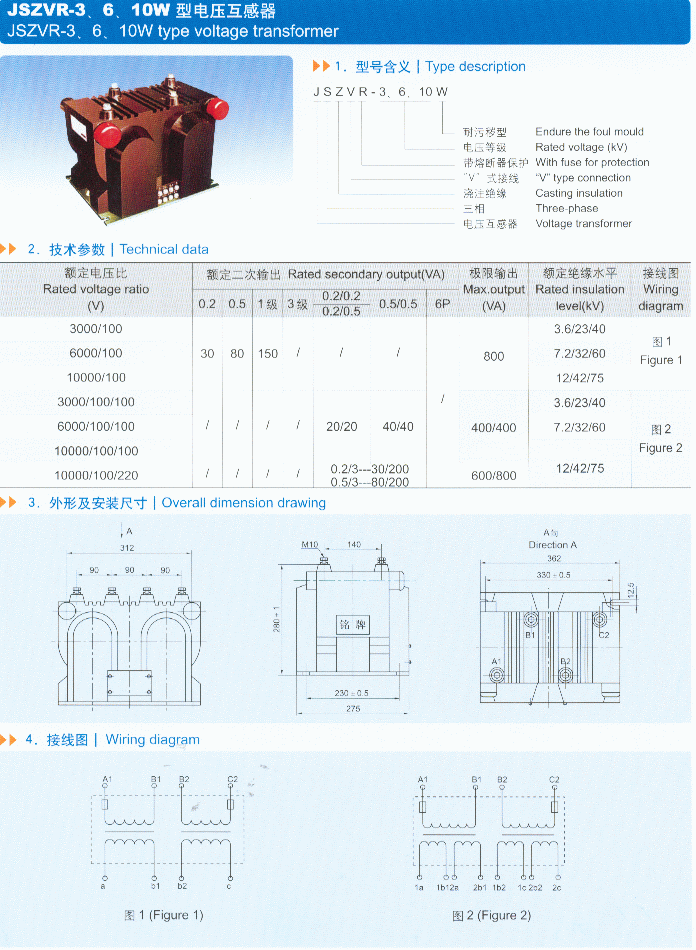 产品标题:JSZVR-3W,6000/100/100,电压互感器